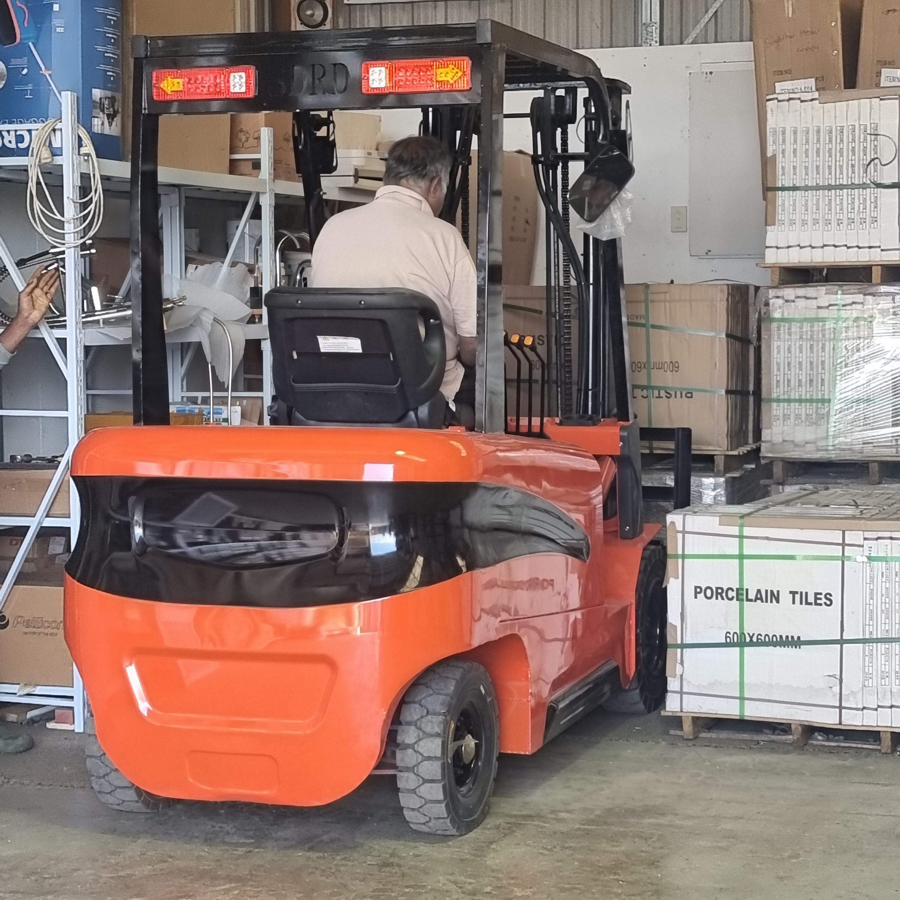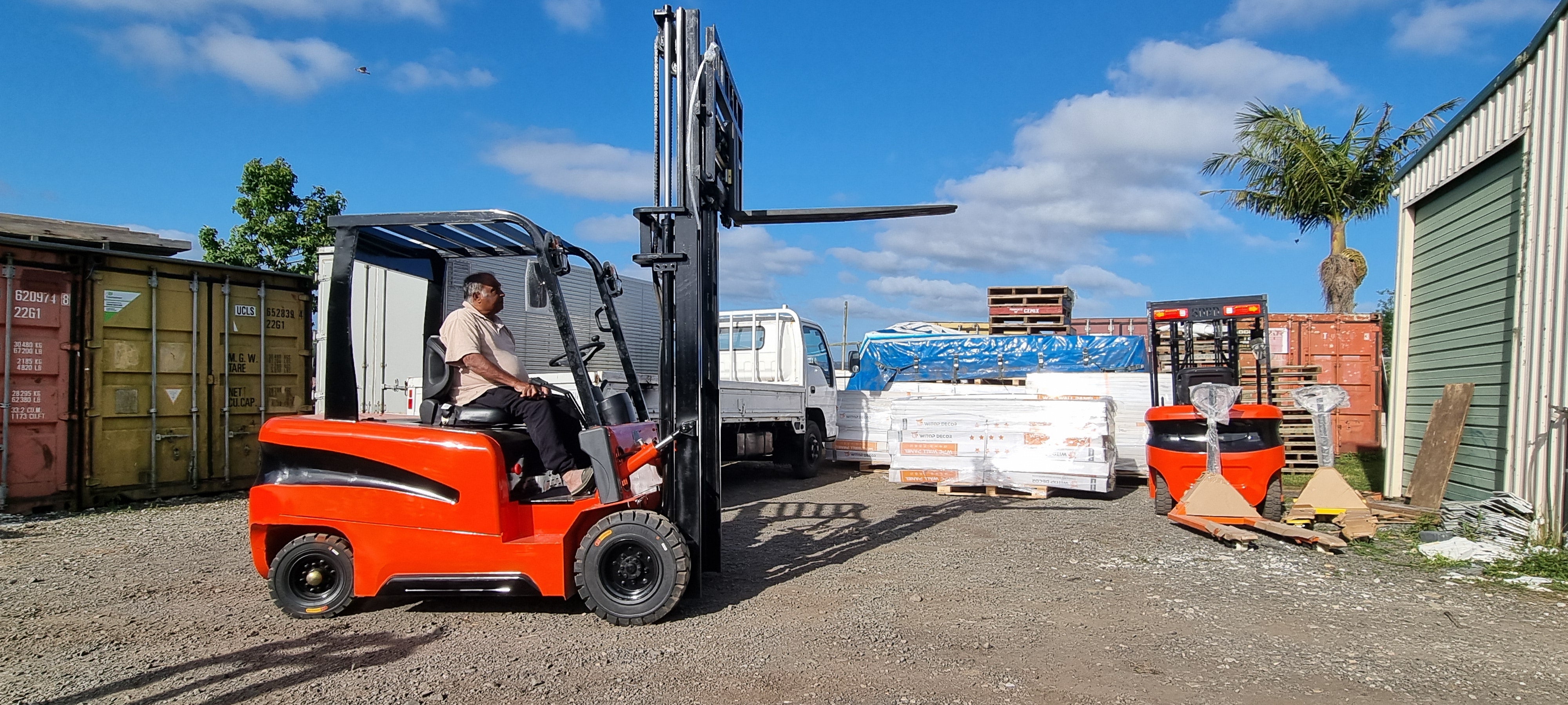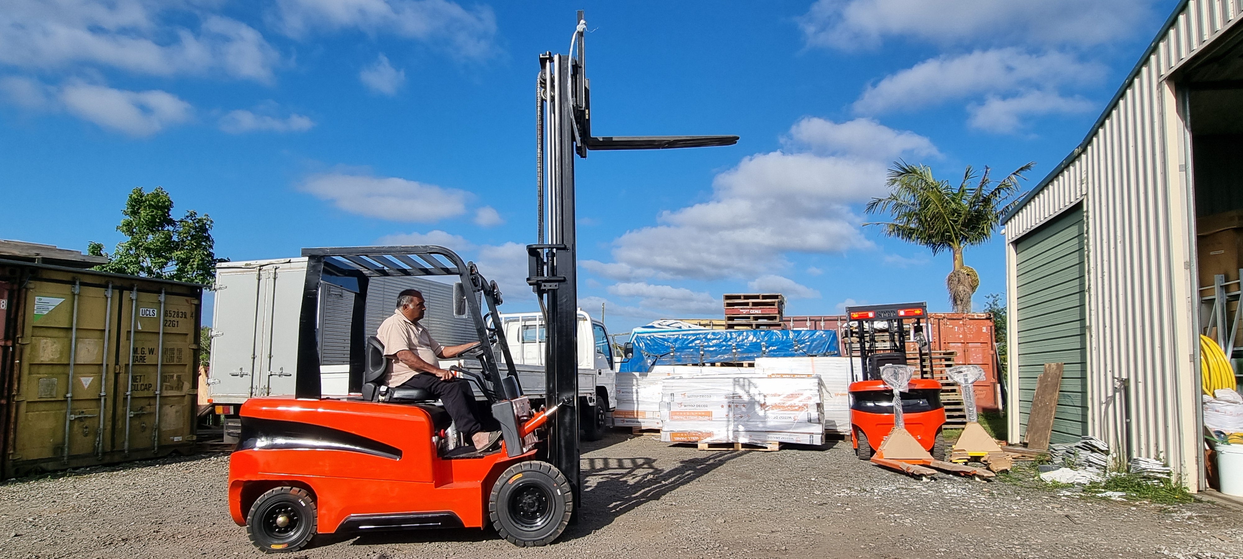 Container spec forklift can operate inside a standard shipping container.