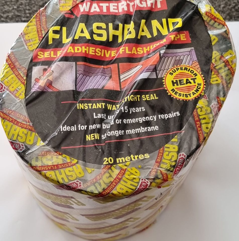 Flashband is a self-adhesive sealing strip that bonds instantly to provide a permanent watertight seal. Applying heat to the flash band using a heat gun etc will also help it to stick, particularly during cold weather.