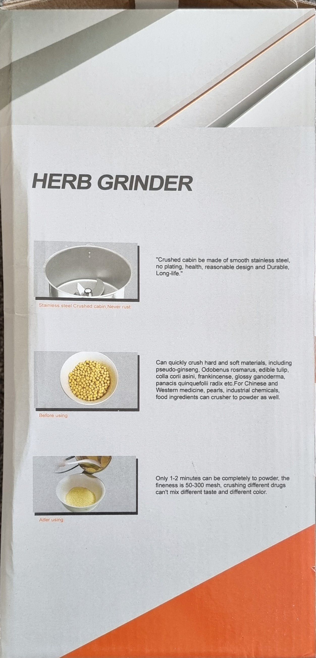 Item: Spice & Herb Grinder. Grind your dry spices into dust in just a few seconds. Good quality, heavy duty spice grinder.
