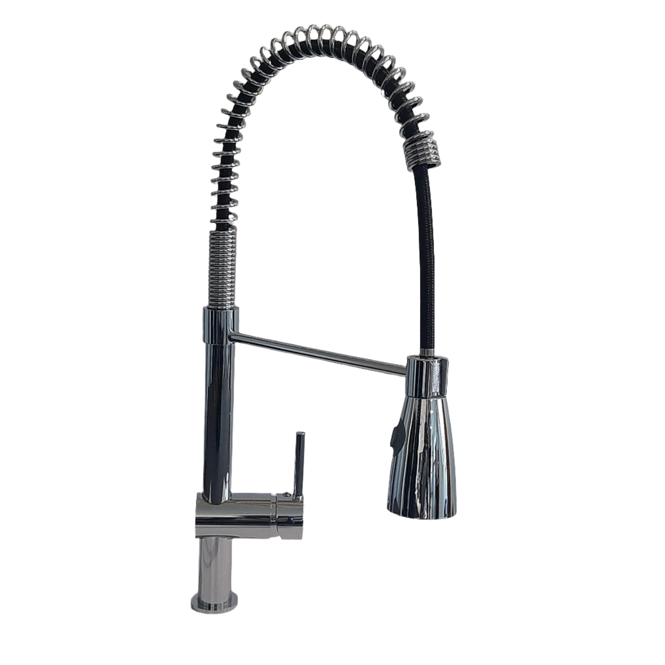 This chrome kitchen faucet adds elegance to any kitchen. Its pull-out design allows for improved function and reach.