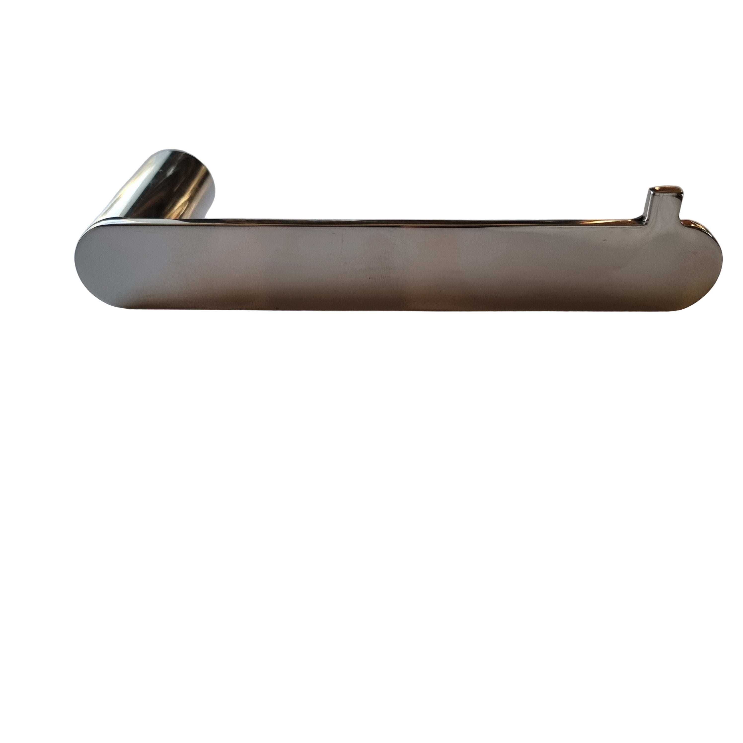 Toilet roll holder with pointed end to prevent rolls falling off.
