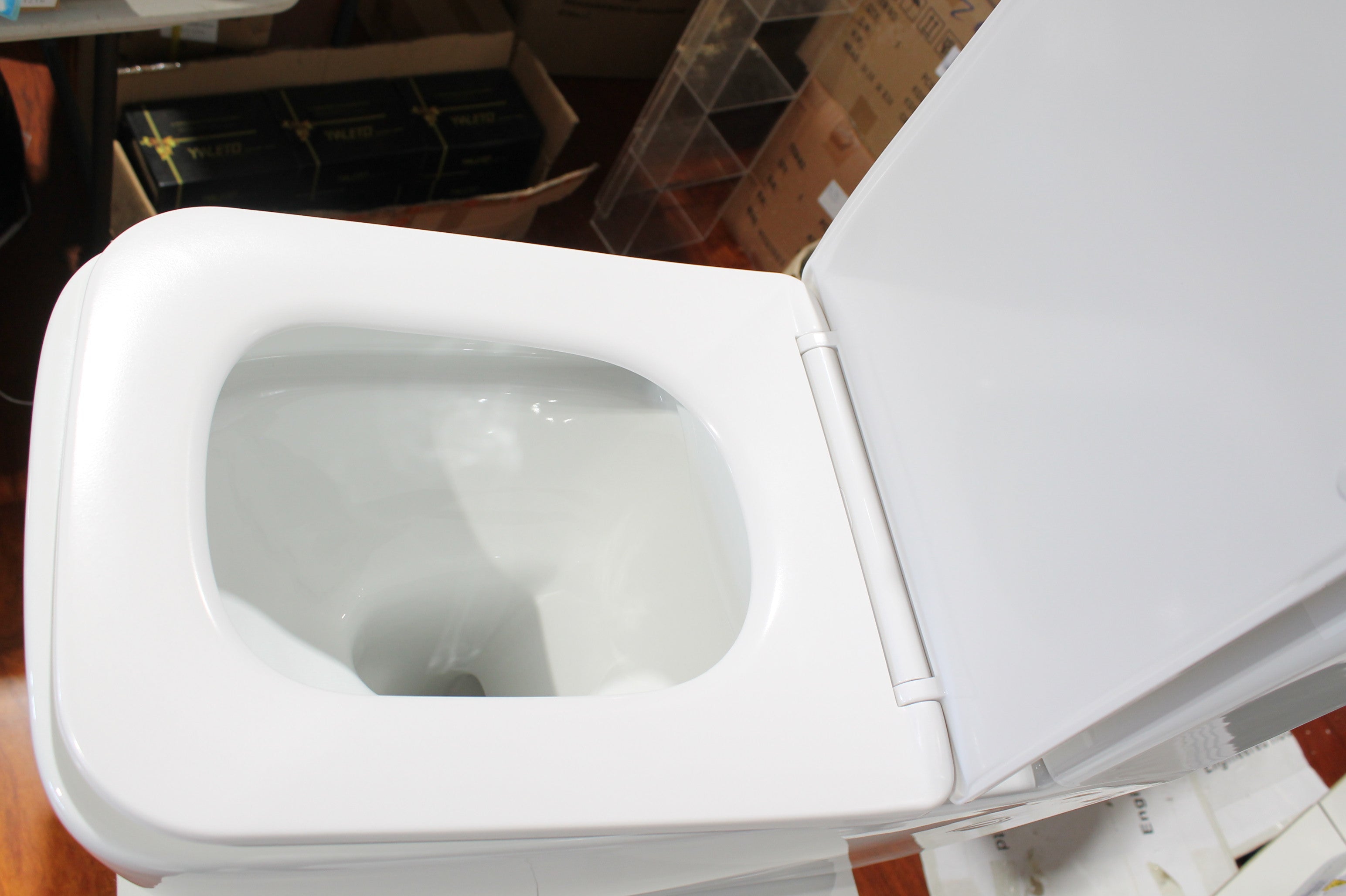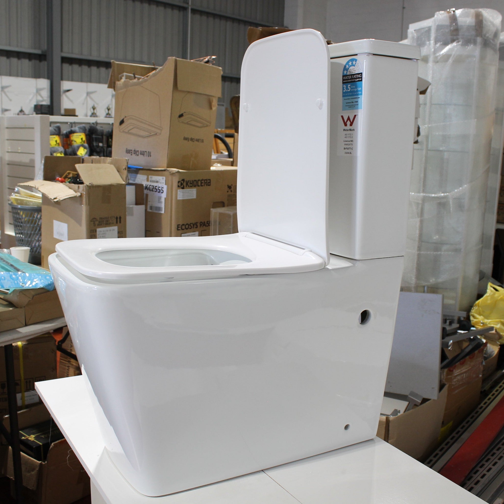 Two-Piece Toilet. Back to wall rimless flush system. Ceramic body, uf cover, r&t fitting.